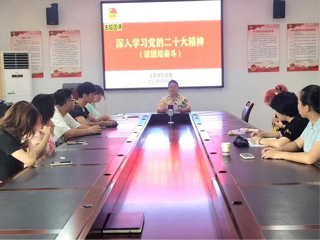 法医学院团委为引领法医青年深入学习领会党的二十大精神,凝聚青年力量,以研讨团结奋斗为题,5月30日,讲授了一堂以“深入学习领会党的二十大精神(谈团结奋斗)”为主题的团课,此次团课由学院团委书记李同秘讲授。学院全体青年以线上与线下相结合的方式全员参与。