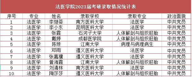 我院考研取得的佳绩,既离不开法医学子们的寒窗苦读,也离不开学院对考研工作的高度重视。长期以来,学院一直把学生考研作为加强学风建设的重要抓手之一,学生通过考研学习,在提升专业知识掌握能力的同时,也培养了认真学习,努力拼搏的良好习惯。除常规教学外,学院还采用多维度的培养方式,提升学生的综合素质。一是以习近平新时代中国特色社会主义思想为指导,强化党建引领,抓实政治建设,学风建设,培养德智体美劳全面发展的新时代新征程法医人才。此次升学的10位学生均为中共党员;二是通过法医能力提升班、“三人行”讲堂、大学生创新创业项目和法医类学科竞赛,全面提升法医学生的专业素养;三是树立典型,激发学生学习热情。通过先进集体、先进个人评比等活动,树立一批先进典型,激发学生的学习热情和积极乐观的人生态度,营造良好的学风班风和校园文化氛围;四是针对报考研究生的学生,考前进行一对一的指导,提高学生面试能力和技巧;五是具有司法鉴定人资格的教师,担任兼职班主任,持续5年,切实做好学生管理工作,提供全方位的学业指导,贯穿法医学生培养的全过程。通过上述措施,既有利于学生在考研复试中脱颖而出,又提升学生在未来工作中的岗位胜任能力。
