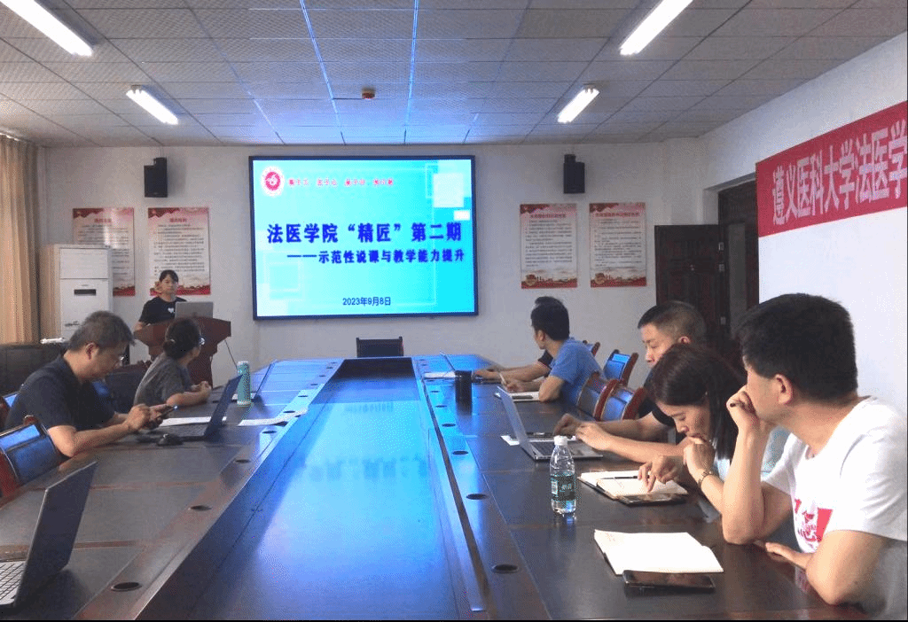 第二期:示范性说课。9月8日,在系统性消化第一期说课综合培训后,学院王玉丹老师进行了《法医专业外语》示范性说课,详细解说了教材、教学目标、教学重难点、教学方法、教学设计和课件的设计等内容。内容详实且丰富的示范性说课,进一步提升了年轻教师的备课水平。