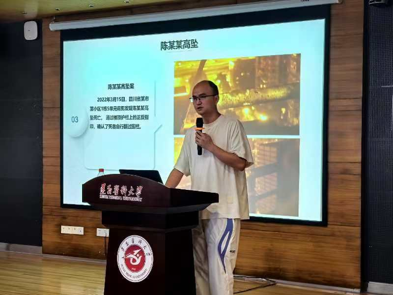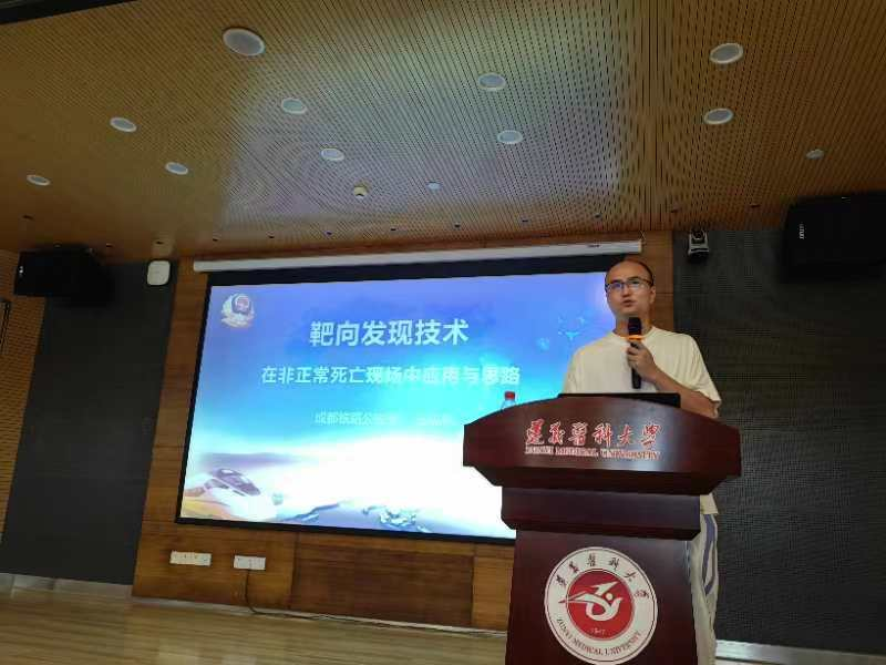 为提升法医学子的专业素养、丰富专业知识、提高专业能力,9月20日15:00分,我院在图书馆一号报告厅为法医学专业2021级开展了一场以“靶向发现技术在非正常死亡现场中应用与思路”为主题的“三人行”讲堂。本次讲座邀请了成都铁路公安局工作的王纵彬警官担任主讲嘉宾,会议由法医学院党委副书记、院长刘云主持。