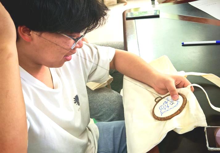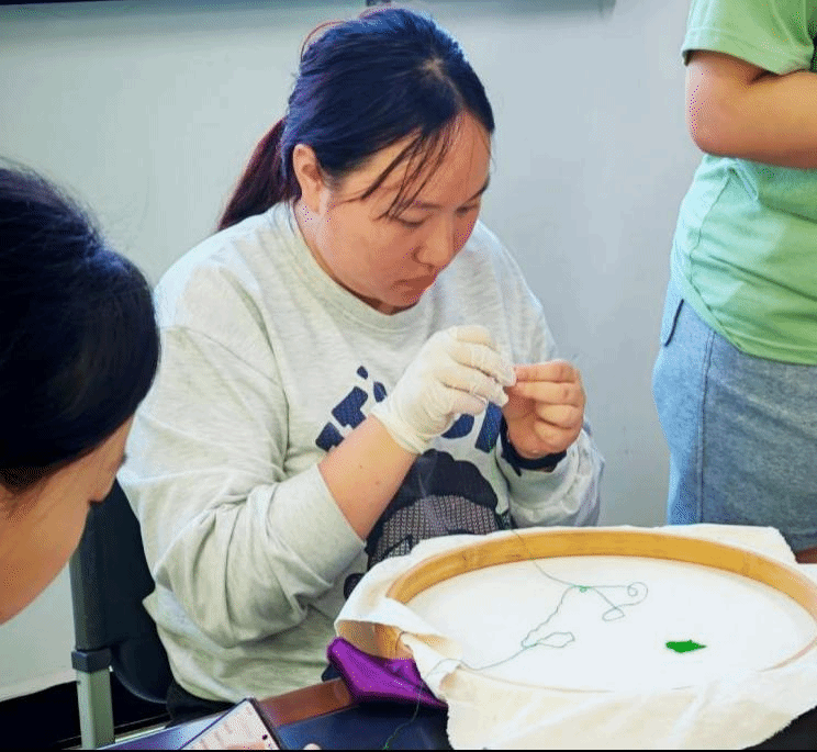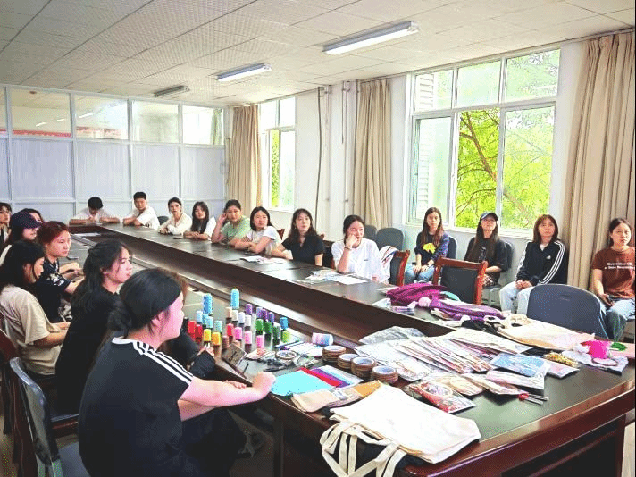 为了让师生们更深入地体验和领会苗绣的独特魅力,李英倩同学提供了融合苗族经典纹样模板。活动参与者将丝线绣制于布料之上,认真学习苗绣技艺,在一针一线中感受苗族文化。来自不同民族的参与者相互交流与合作,共同完成作品。