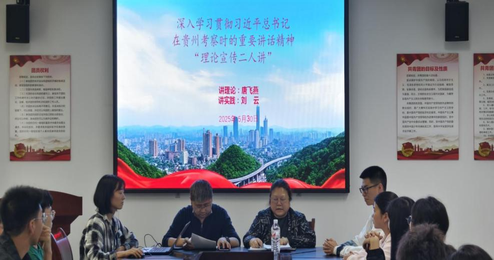 为深入学习贯彻习近平总书记在贵州考察时的重要讲话精神。2025年5月30日,在法医学院会议室,法医学院党委书记唐飞燕与学院党委副书记、院长刘云同志以“理论宣传二人讲”的方式,为党员展开了一场特别的宣讲会。