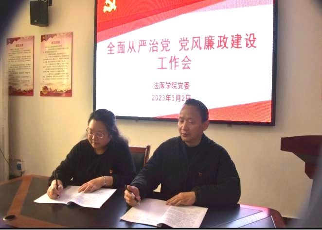 会上,法医学院党委分别与办公室、团委、鉴定中心党支部、学生党支部、法医学病理教研室、法医学物证教研室、法医学实验室签订了《中共遵义医科大学法医学院委员会2023年党风廉政建设责任书》,并观看了警示教育视频《一严到底——贵州正风肃纪反腐》第二集《筑牢作风堤坝》。(撰稿、摄影:张婷 一审:李同秘 二审:刘云 三审:唐飞燕)